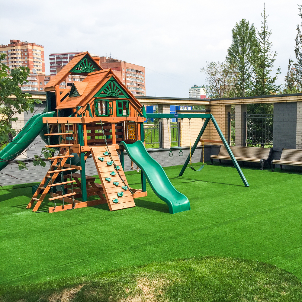 Для долговечной службы газона основание площадки должно быть укреплено геотекстилем Дорнит (в наличии).