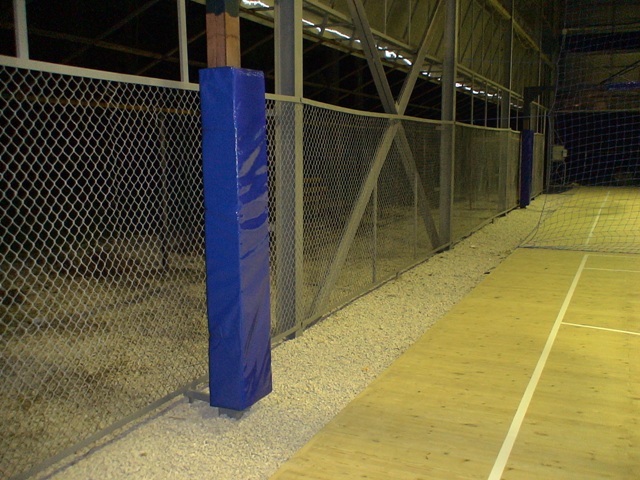 Изготавливается из ПВВ в чехле из тентовой ткани, обычно синего цвета и крепится на нижнюю часть бетонируемой баскетбольной стойки сечением 100х100 мм. Мягкая защита баскетбольной стойки имеет высоту 2 м.