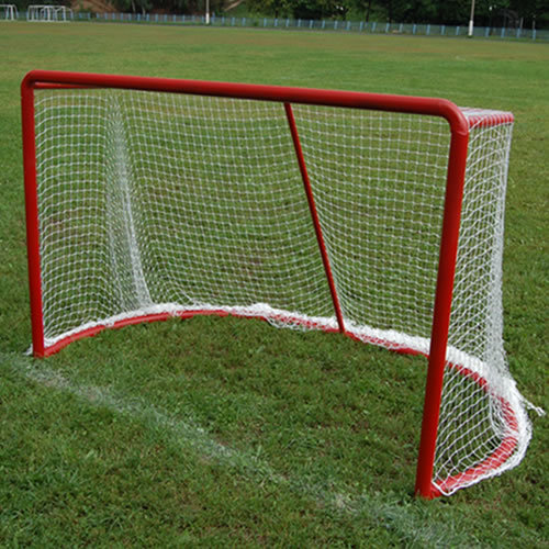 Ворота хоккейные игровые предназначены для проведения тренировок и соревнований. Изготовлены из металлической трубы диаметром 48 мм. Задник хоккейных игровых ворот имеет округлую форму, что необходимо для правильного и безопасного отскока шайбы и изготовлен из металлической трубы диаметром 32 мм. На воротах имеются петли для крепления сетки и отверстия для установки шпилек фиксирующих ворота на льду.