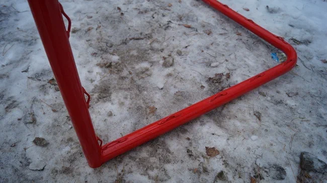 - Ворота изготавливаются из стальной трубы диаметром 48 мм.,а задняя часть 33,5 мм.