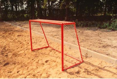 Ворота хоккейные тренировочные предназначены для проведения тренировок и соревнований местного уровня. Отличительной особенностью от игровых ворот является небольшая глубина ворот, что во многих случаях является большим преимуществом при транспортировке и хранении. Изготовлены ворота из металлической трубы диаметром 48 мм. На воротах имеются петли для крепления сетки и отверстия для установки шпилек фиксирующих ворота на льду.