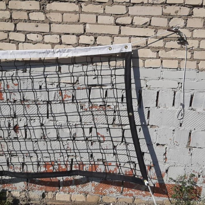 Сетка волейбольная черного цвета со стальным тросом в оплетке.