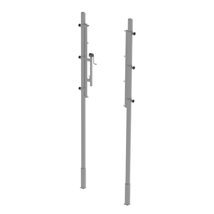 Такие волейбольные стойки могут использоваться на улице или в помещении для игры в различные спортивные дисциплины: большой теннис, волейбол или бадминтон. Стойки волейбольные устанавливаются в стаканы, что позволяет при необходимости убрать стойки и освободить площадку.
