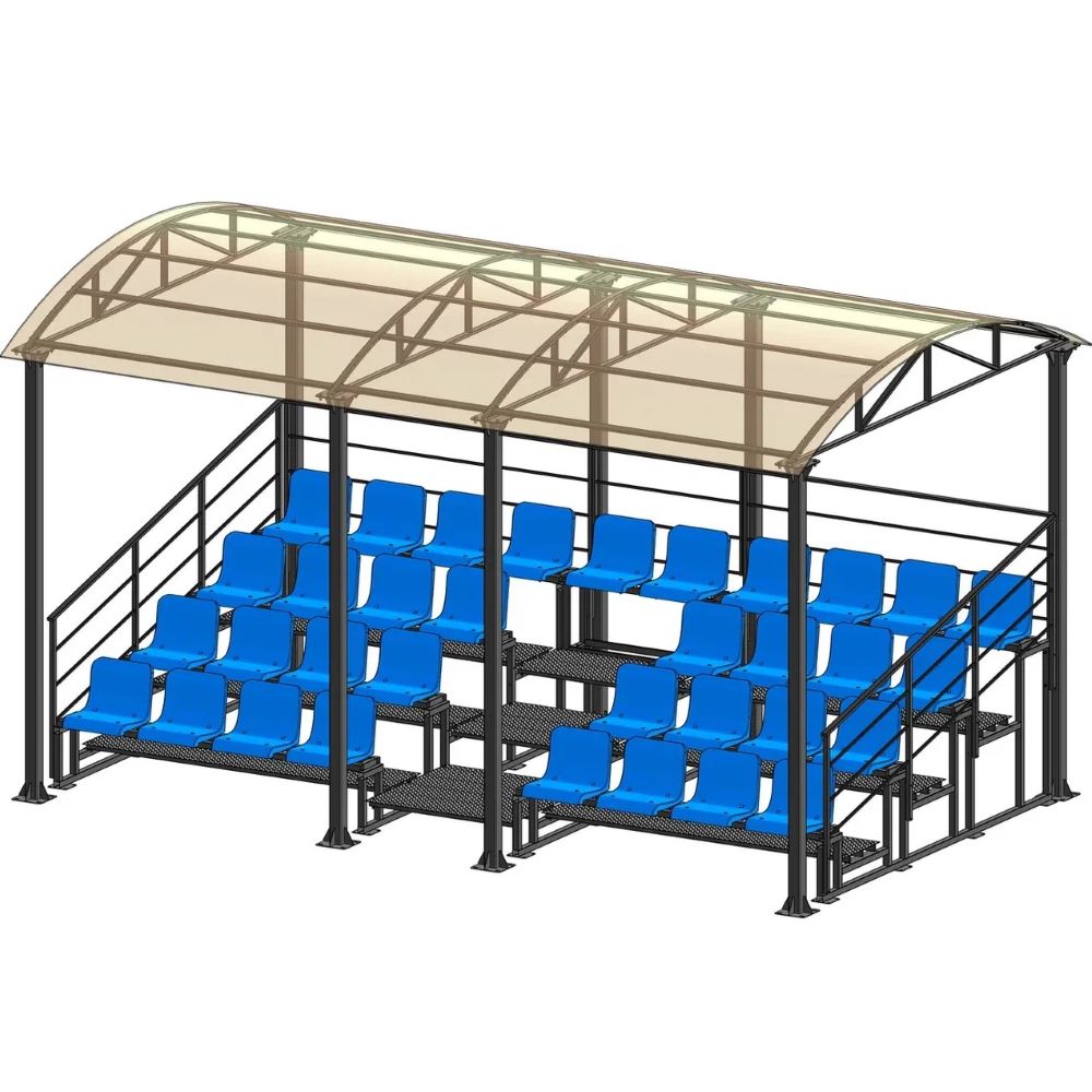- Трибуна модульная представляет собой сборную конструкцию из секций, от 3 до 4 сидений в одном ряду, от 2 до 5 рядов