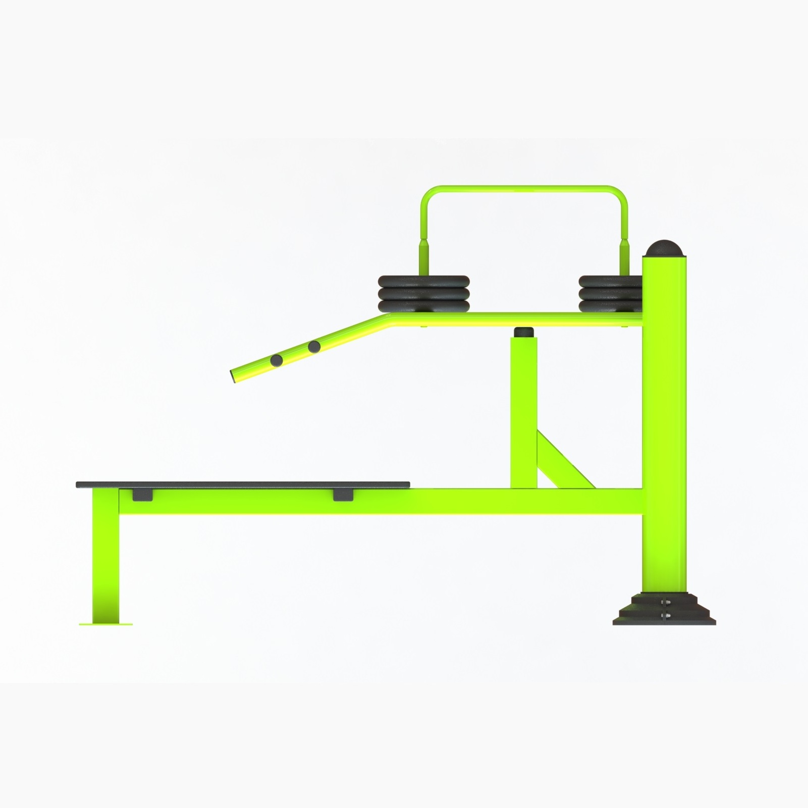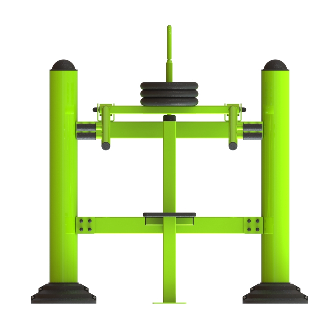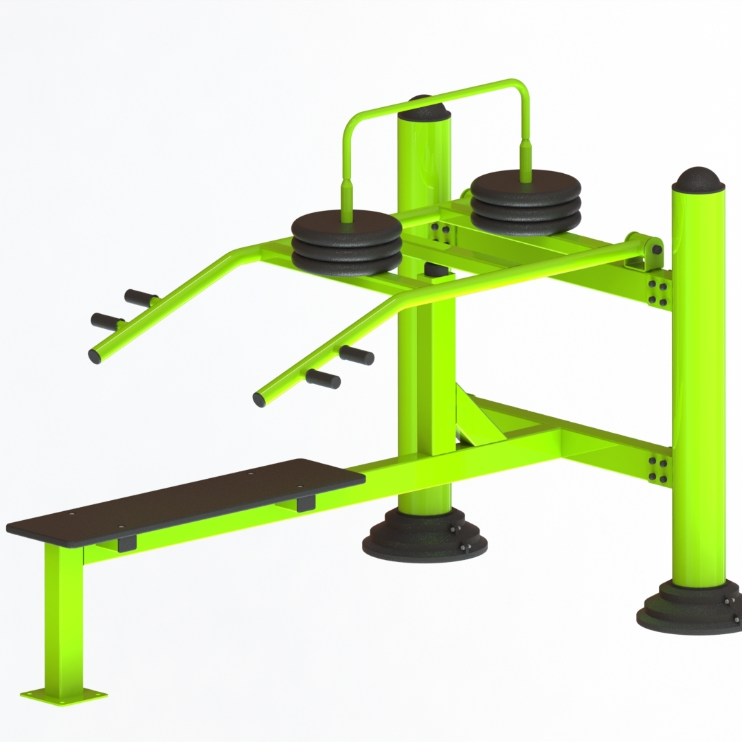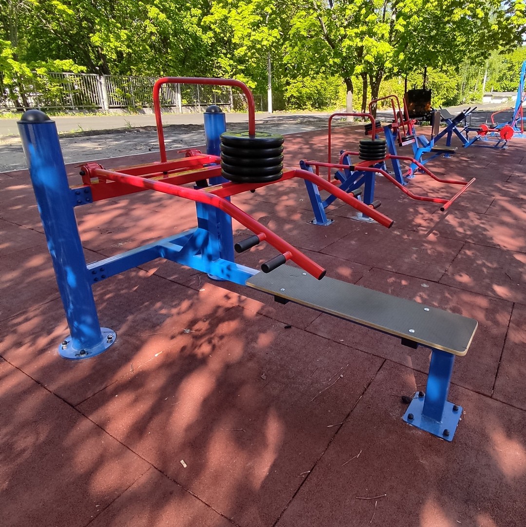 Уличный тренажёр «Жим лёжа с изменяемой нагрузкой» предназначен для стационарной установки на уличной площадке. Упражнения в тренажере имитируют жим штанги и развивают мышцы спины, груди и рук. Нагрузка в тренажере осуществляется за счет веса металлических обрезиненных дисков. Шаг нагрузки 10 кг, максимальный вес 60 кг. Два уровня хвата для людей разного роста. Подходит для пользователей разного уровня физической подготовки.