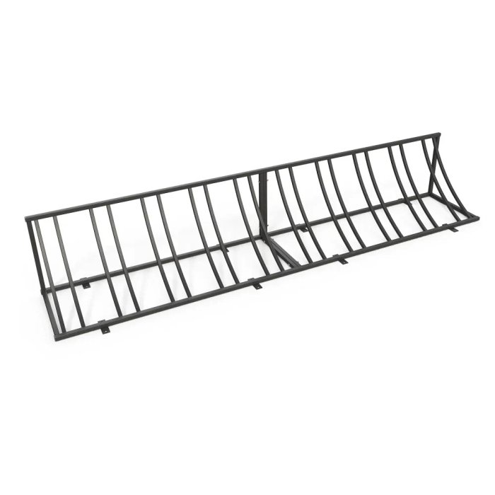 - Велопарковка на 10 велосипедов оснащена пластинами для крепления к полу.