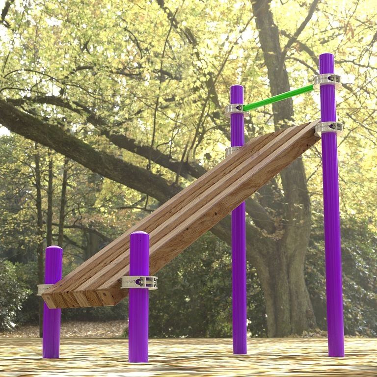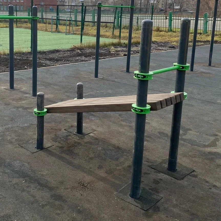 - Скамьи для пресса, фиксирующейся к столбам на высоте от 500 мм от поверхности основания.