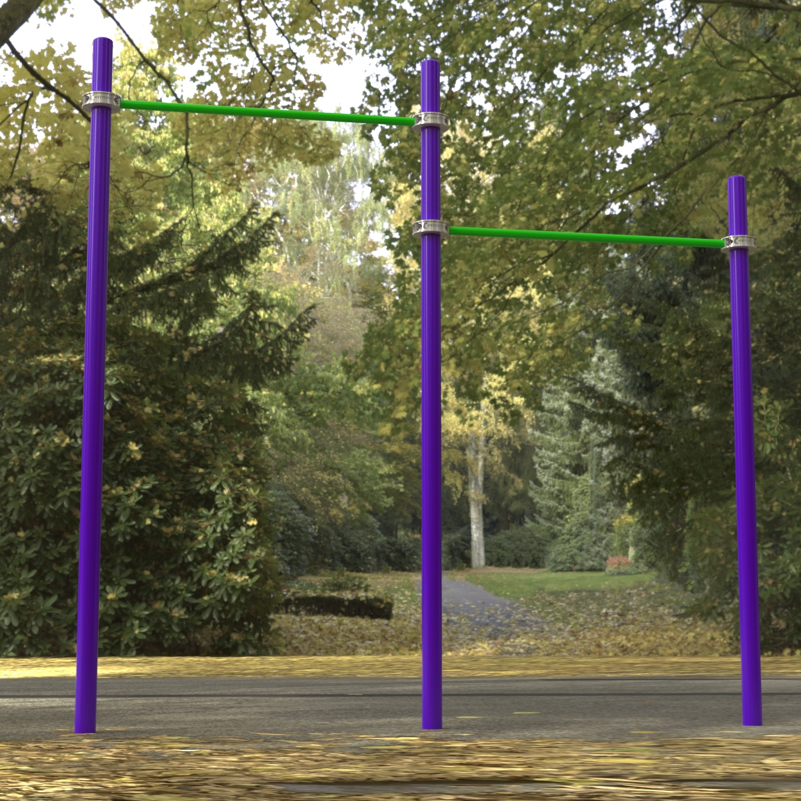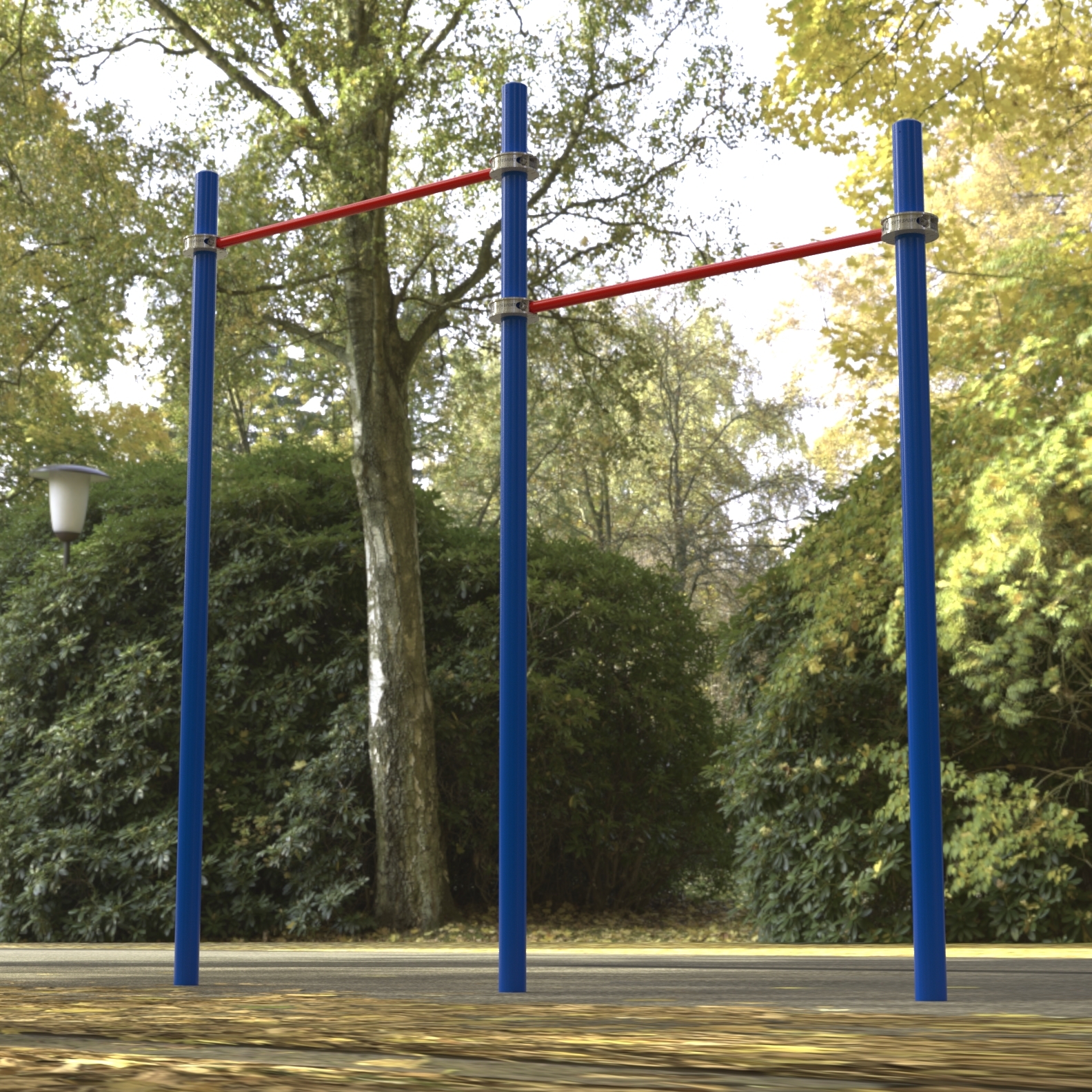 - Трёх опорных столбов, изготовленных из металлических труб высотой 2,9 м.(1 шт.) и 3,3 м.(2 шт.), сверху закрытых металлическими полусферами.